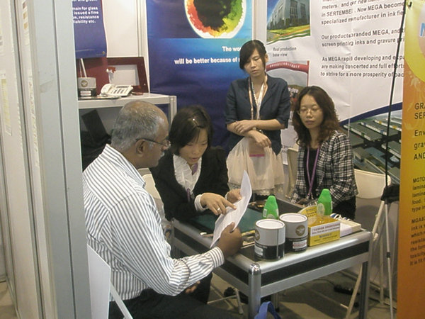 Through e-commerce to achieve some effect on foreign trade, I Division participated in various public exhibitions, such as June this year, Germany FESPA exhibition, October Autumn Fair, FESPA exhibition in Singapore next year and so on, the ink is not a lot of buyers autumn pay at the meeting, there are a lot of intention buyers consult and obtain the ink sample and information. Hope that through a variety of trade show to the world the band Mika~~~