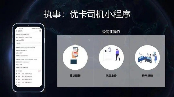 打開優(yōu)卡運車司機小程序——接單后的節(jié)點提報、運抵后的回單上傳、出現(xiàn)問題的異常反饋,所有操作線上自主完成,過程公開、透明,待運車輛還按實際車值投放貨物運輸險,運車風(fēng)險降至最低。