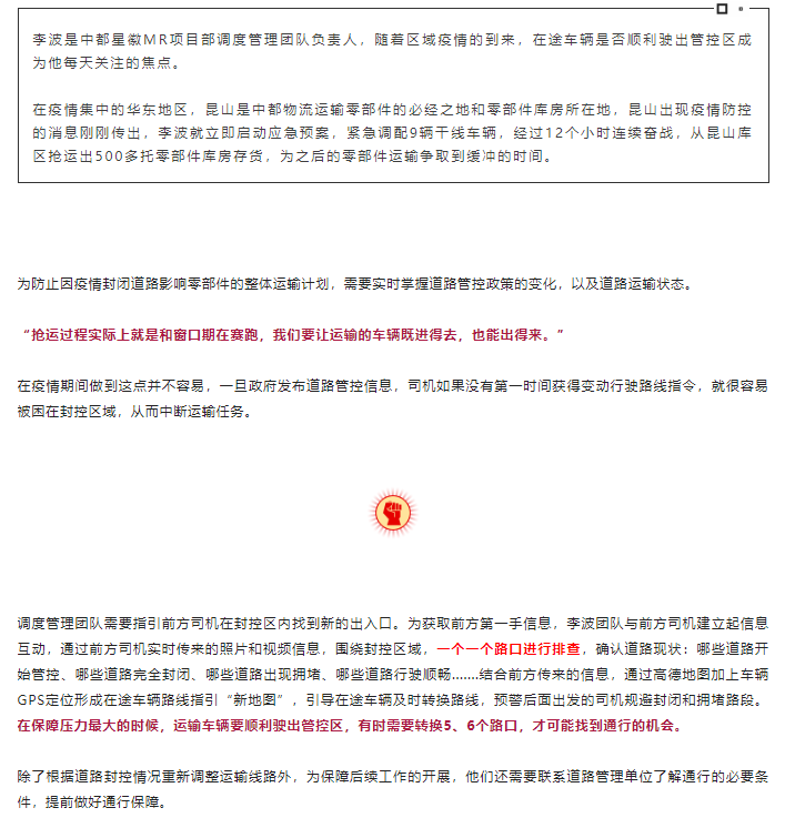 【保產(chǎn)保供“接力賽”】運輸路上的“導航員”——零部件物流第二棒“干線運輸”