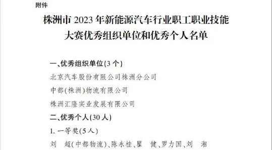 近日,株洲市總工會(huì)、株洲市人力資源和社會(huì)保障局發(fā)文,表彰在株洲市 2023 年新能源汽車行業(yè)職工職業(yè)技能大賽中取得優(yōu)勝的組織和個(gè)人,中都物流旗下中都株洲員工劉超,以高超的叉車駕駛操控技術(shù)和扎實(shí)的理論知識(shí)功底榮獲大賽一等獎(jiǎng)。