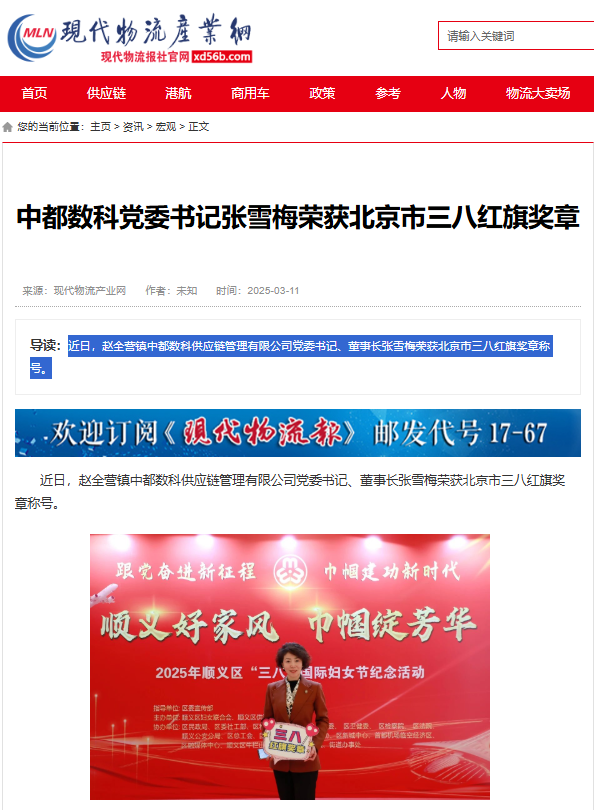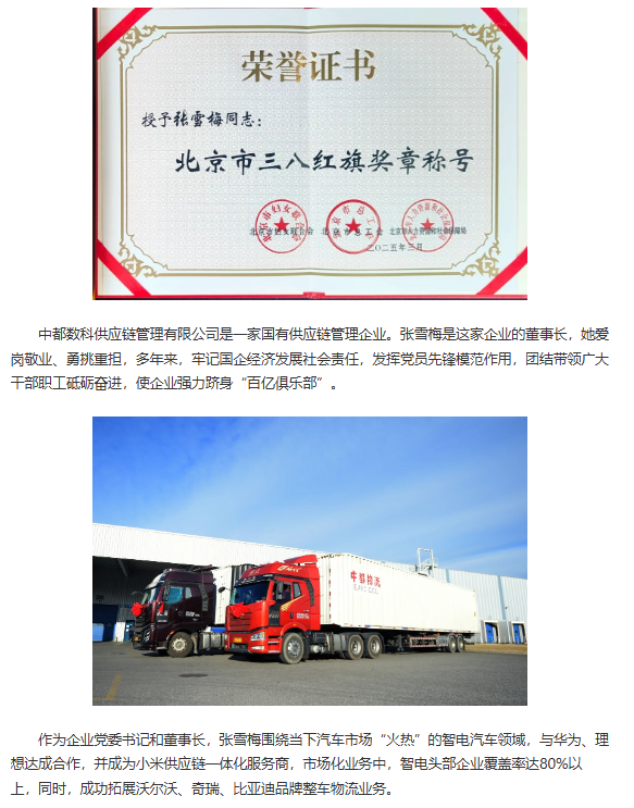 中都數科黨委書記張雪梅榮獲北京市三八紅旗獎章