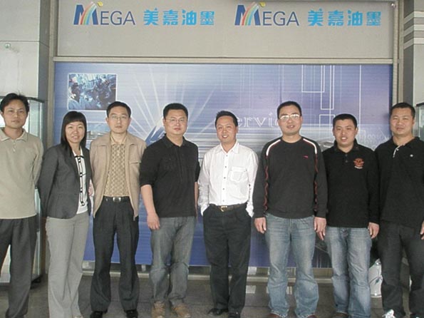 2008年4月26日重慶創(chuàng)意工藝標牌制造有限公司王總一行在重慶恒美印刷器材經(jīng)營部喻總的帶領(lǐng)下來我司參觀指導(dǎo).著重與我司交流了現(xiàn)在重慶貼花市場的要求進行了詳細的交流,并肯定了我司貼花油墨在市場上的品質(zhì)。