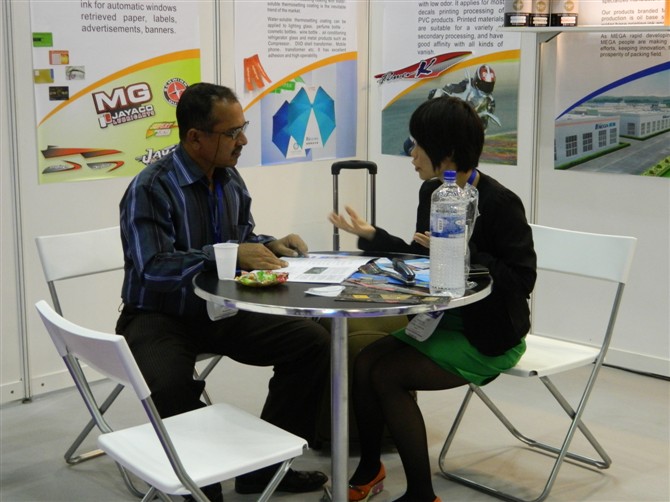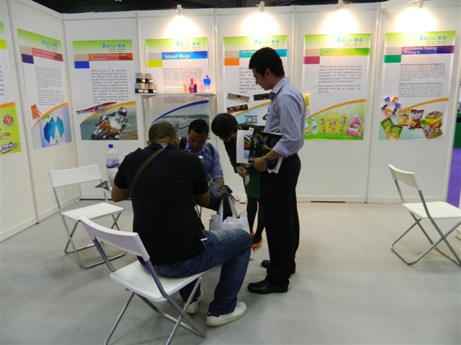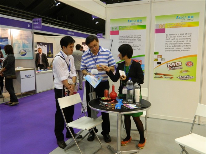 2011年10月,我們參加了FESPA于新加坡舉辦的國際絲網(wǎng)印刷展會,展會上精美的印件,特別是新產(chǎn)品水性噴漆及熱轉(zhuǎn)印油墨吸引了很多買家前來咨詢產(chǎn)品和技術(shù)信息,為美嘉進一步走向世界奠定了良好的基礎(chǔ)。